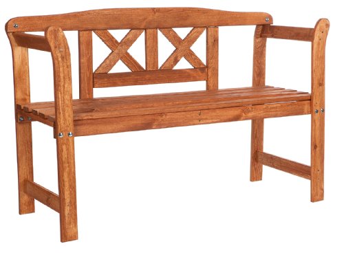 Wooden Garden Bench with a crossed rest, weatherproof glazed in cherry tree color